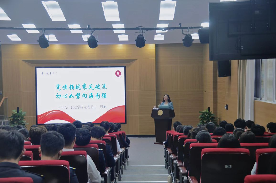 党委书记周楠以《党旗领航乘风破浪,初心如磐向海图强》为主题,在图书馆胜海厅为党校第26期培训班146名学员讲授党课暨秋季学期思政第一课。