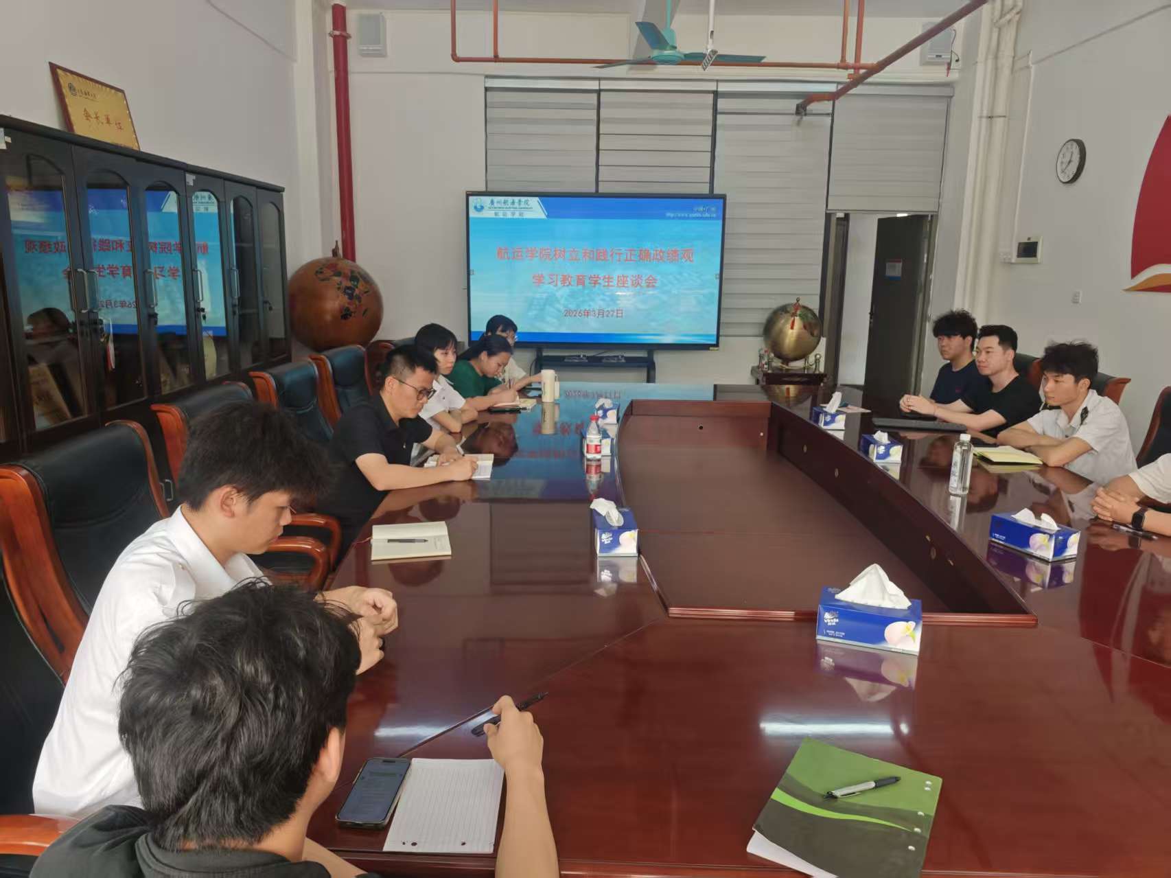 在B7航海楼512会议室召开树立和践行正确政绩观学习教育学生座谈会。会议由日本无码学生工作临时负责人钟聪仕主持,学生党支部书记、各年级、专业学生代表参会。